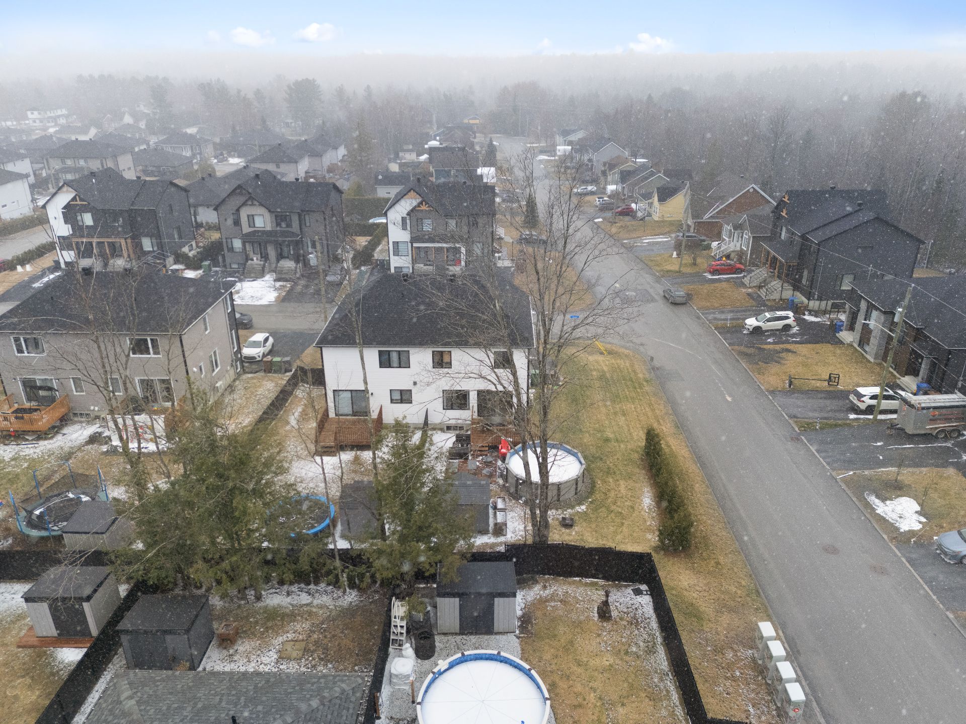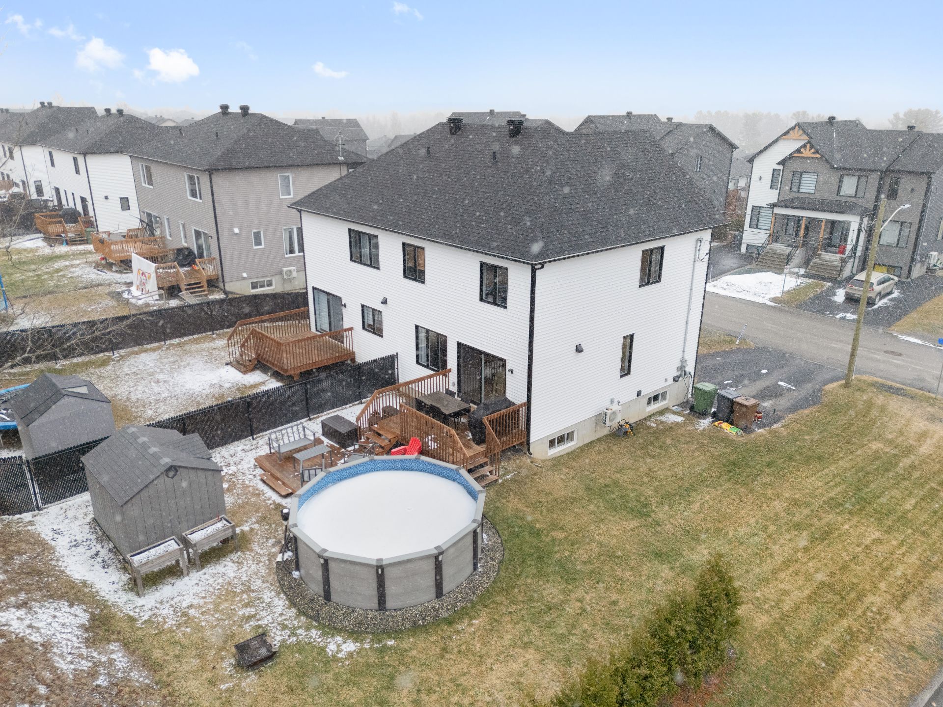 patio, la piscine hors-terre chauffée et la remise créent